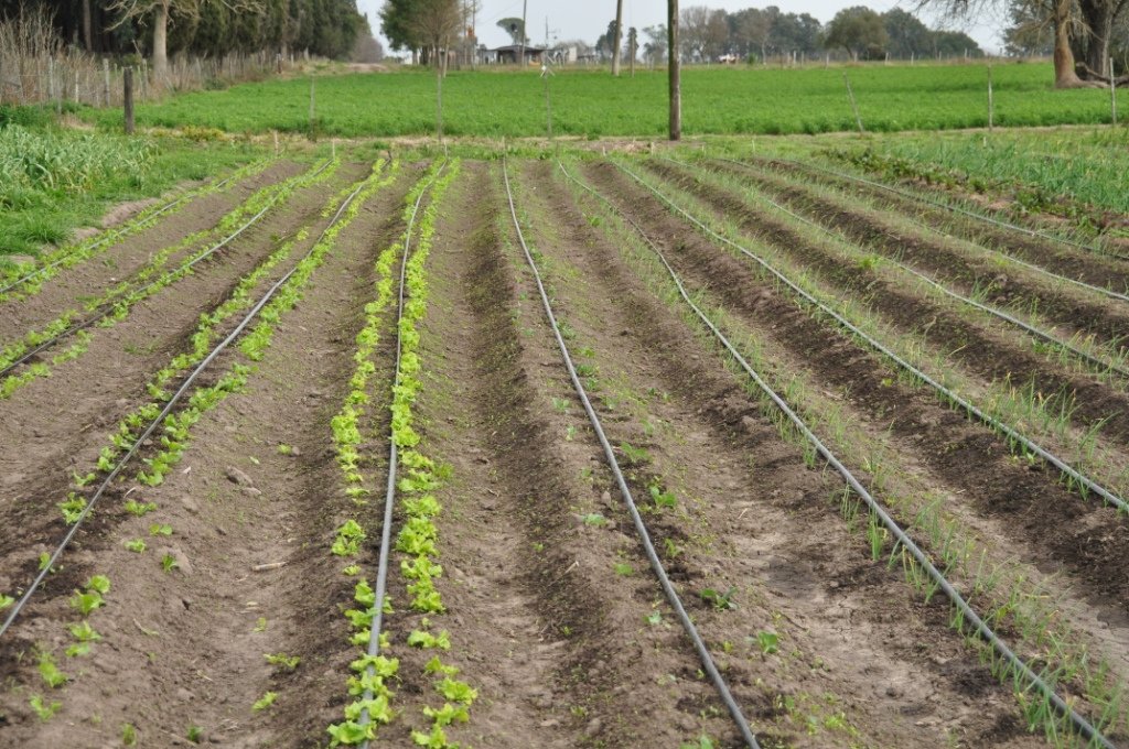 Riego por goteo agrícola aplicado en lechuga